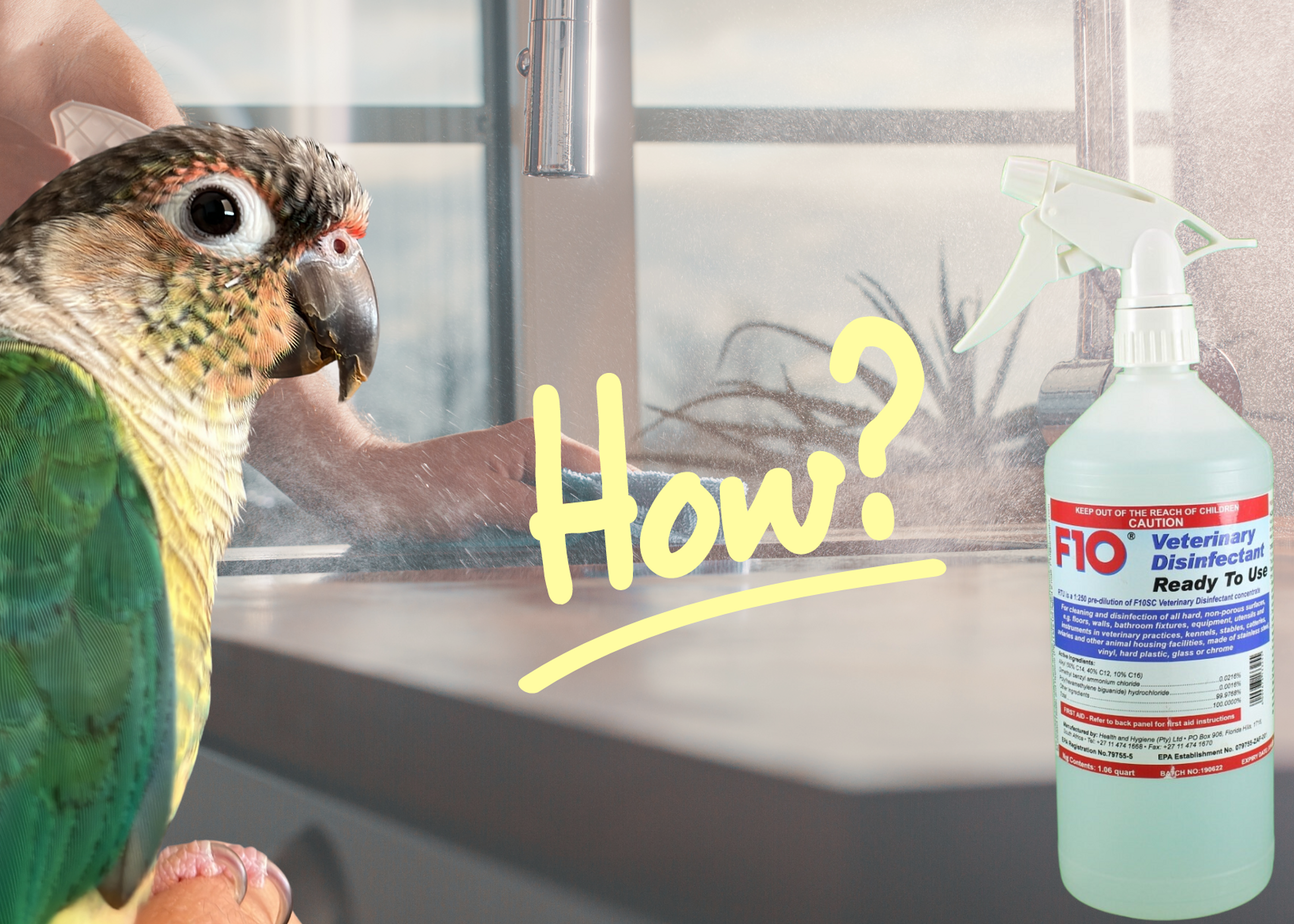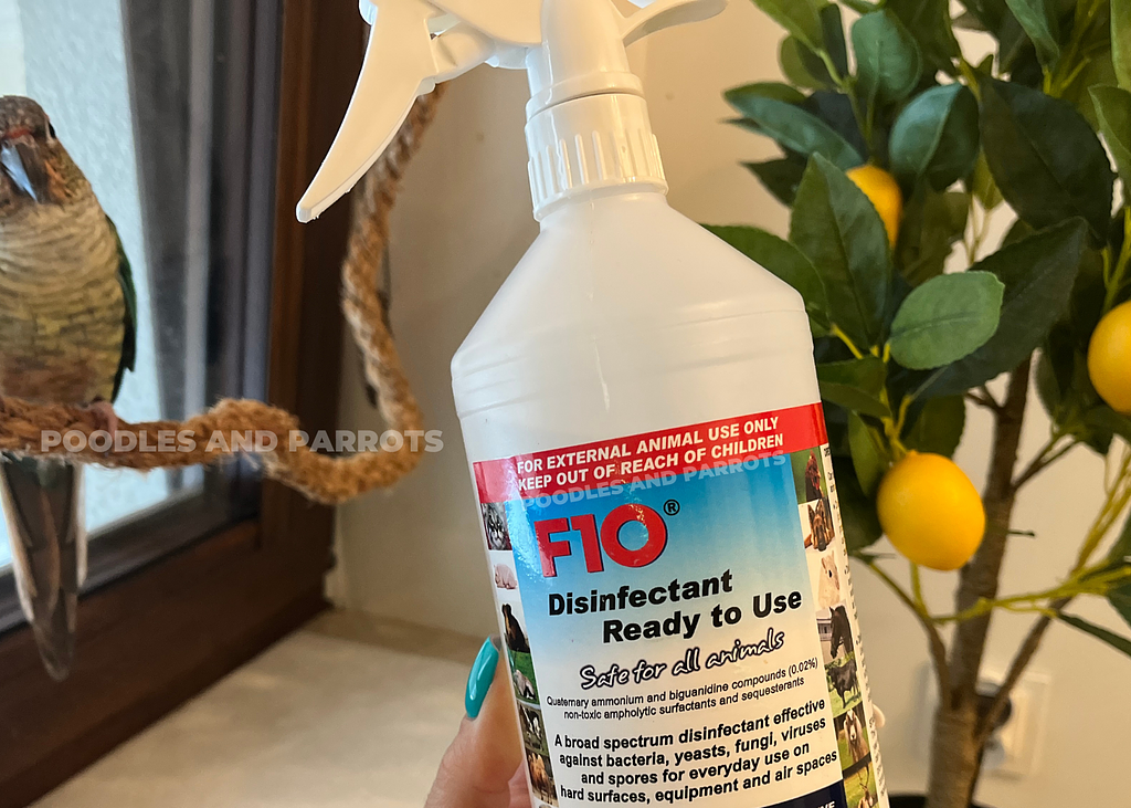F10 is a great disinfectant you can use at home to ensure that your environment is effectively cleaned and disinfected. It helps maintain a safe and hygienic space for your birds and other pets.