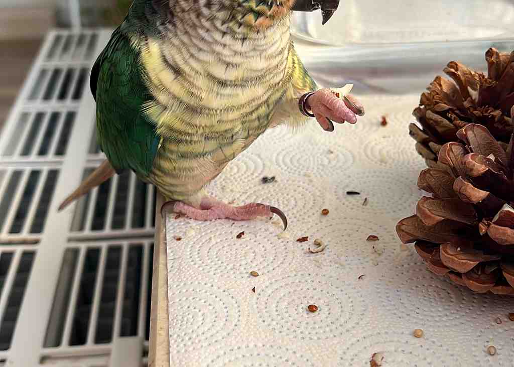 - Keep a close eye on the overall cleanliness of the cage. Regular liner changes and cage cleaning are crucial for your parrot's health.