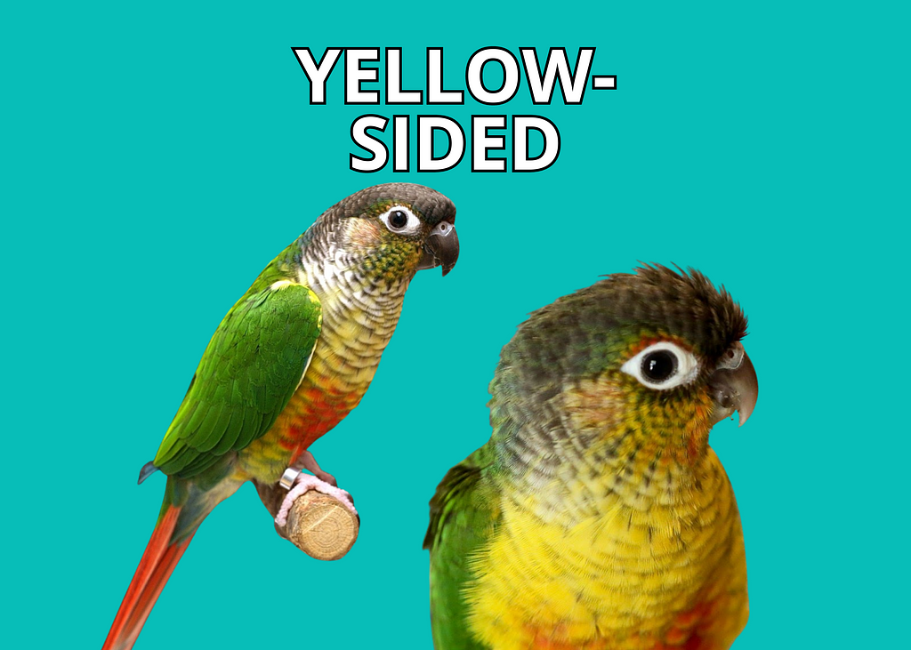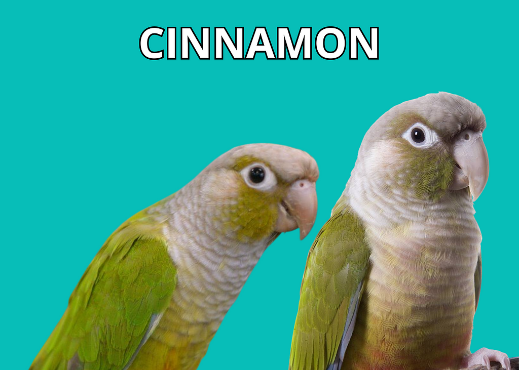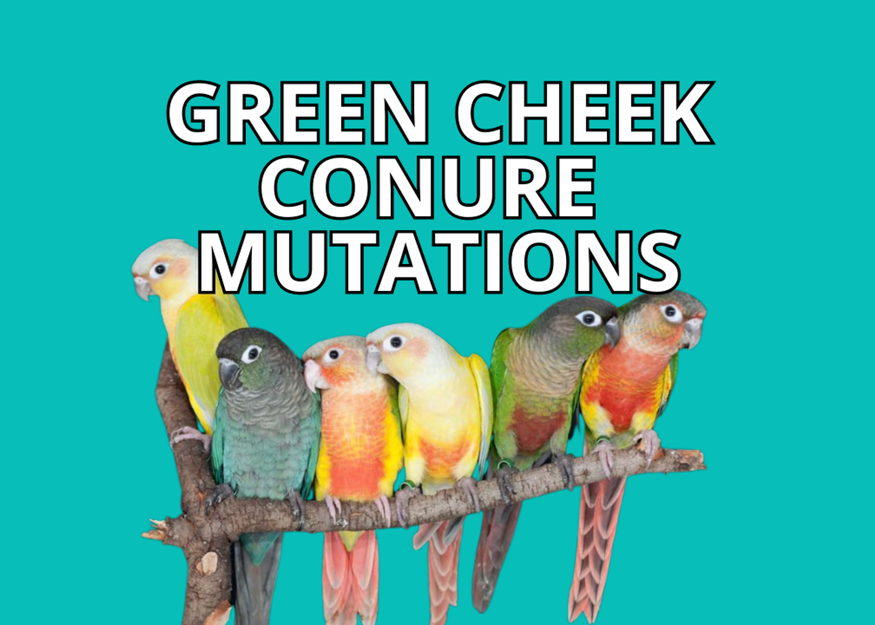 Green-cheeked conures (Pyrrhura molinae) have several popular mutations, each characterized by distinct changes in their colouration.