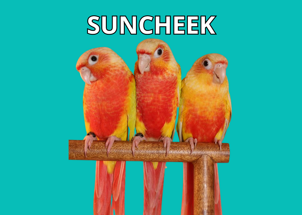 The Suncheek is a combination mutation. These conures have a reduced green colouration, increased yellow pigmentation on the sides, and red bellies.