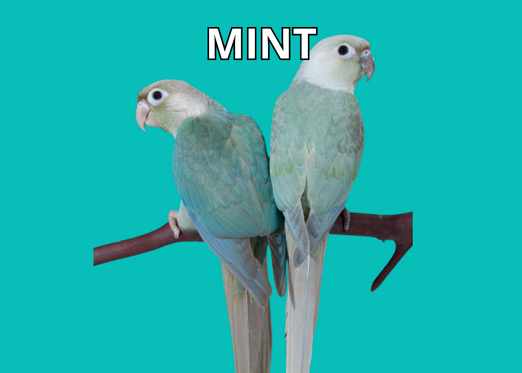 The mint mutation is relatively rare and recent. It produces a pale green or minty coloration in the feathers, which is lighter and softer than the typical green cheek conures.