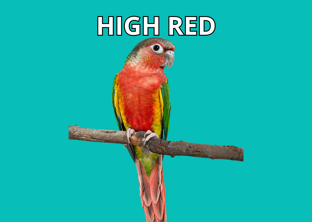 The high red mutation intensifies the red pigmentation in the bird's plumage, particularly on the belly and chest. These birds often have a deeper, richer red coloration on their cheeks and body.