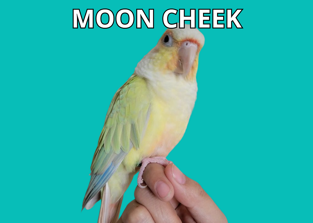 Mooncheek Conure: The Mooncheek conure is an intriguing variant of the green cheek conure. These conures showcase a delightful blend of various mutations, encompassing dilute, yellow-sided, and turquoise traits.
