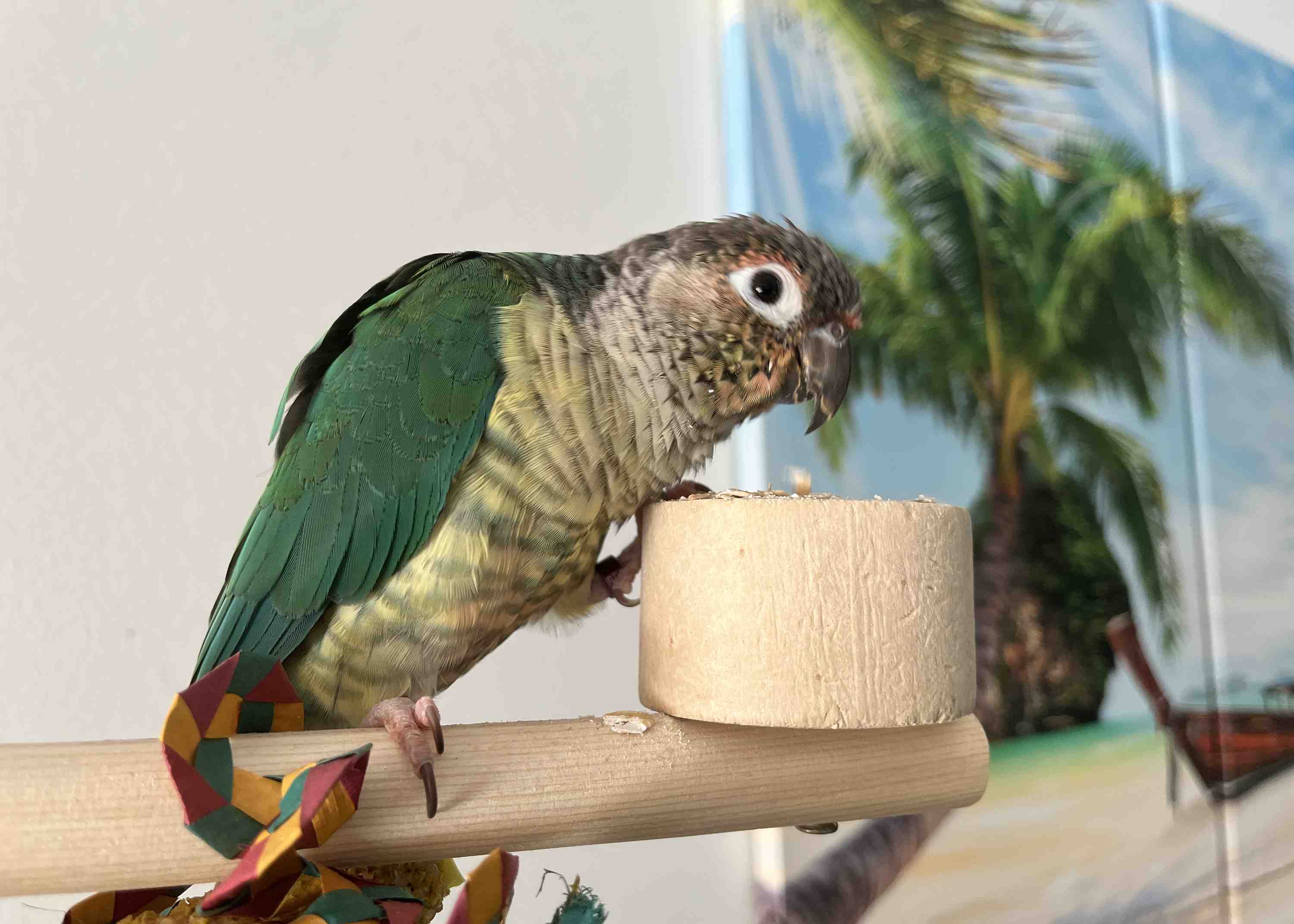 6. Increased independence: As conures mature, they may become more independent, like with eating, playing with various toys, pros at foraging etc. They will have a desire for more freedom and need to burn all the extra energy via exercise. 7. Reproductive behaviour: In some cases, sexually mature conures may attempt to mate, even if they are housed alone. They may show an increased interest in nesting activities or trying to rub their private parts on objects or people - it's important not to encourage this!
