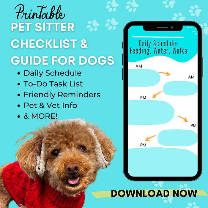 Keep your pets safe and happy while you're away with our printable Pet Sitter Checklist! This handy guide includes everything your pet sitter needs to know, from your pet's daily schedule to important contact and vet information.