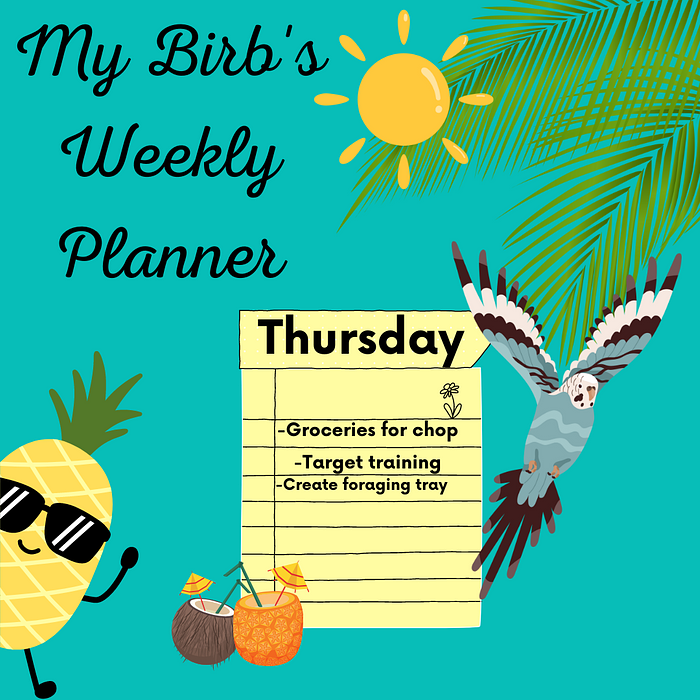 Parrot Planner: Stay organized with your parrot's needs with this printable daily/weekly planner page! From Monday-Friday with a fun summer theme :)