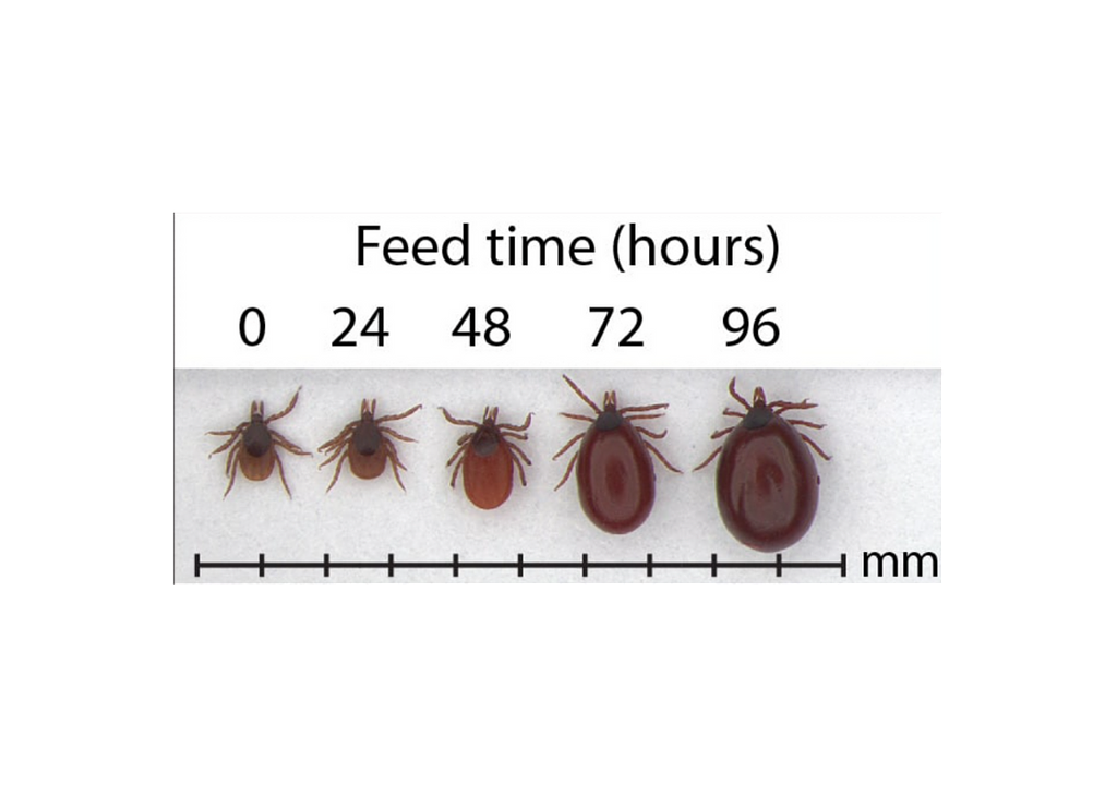 Ticks grow in size as they feed, so be aware of how they may look in different stages so you know that it's a tick!