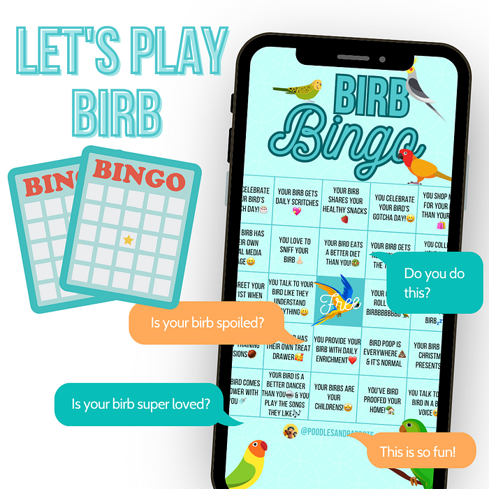 🦜 Join the Feathered Fun with Parrot Bingo! 🎉 You can use on social media and tag your #birdiebesties or even print it and play with your besties! Let the fun begin!
